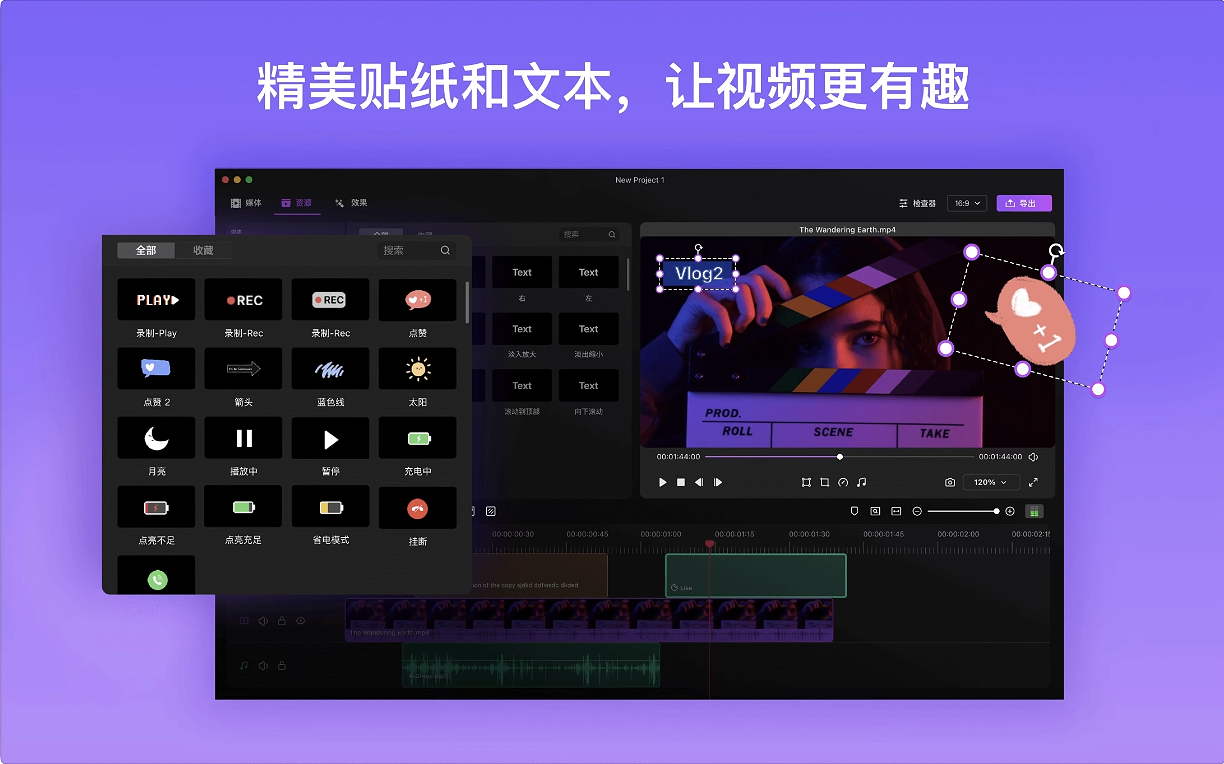 - 内置130多个贴纸和60多种滤镜,可为视频添加各种标记、形状、特效及字幕,个性十足。