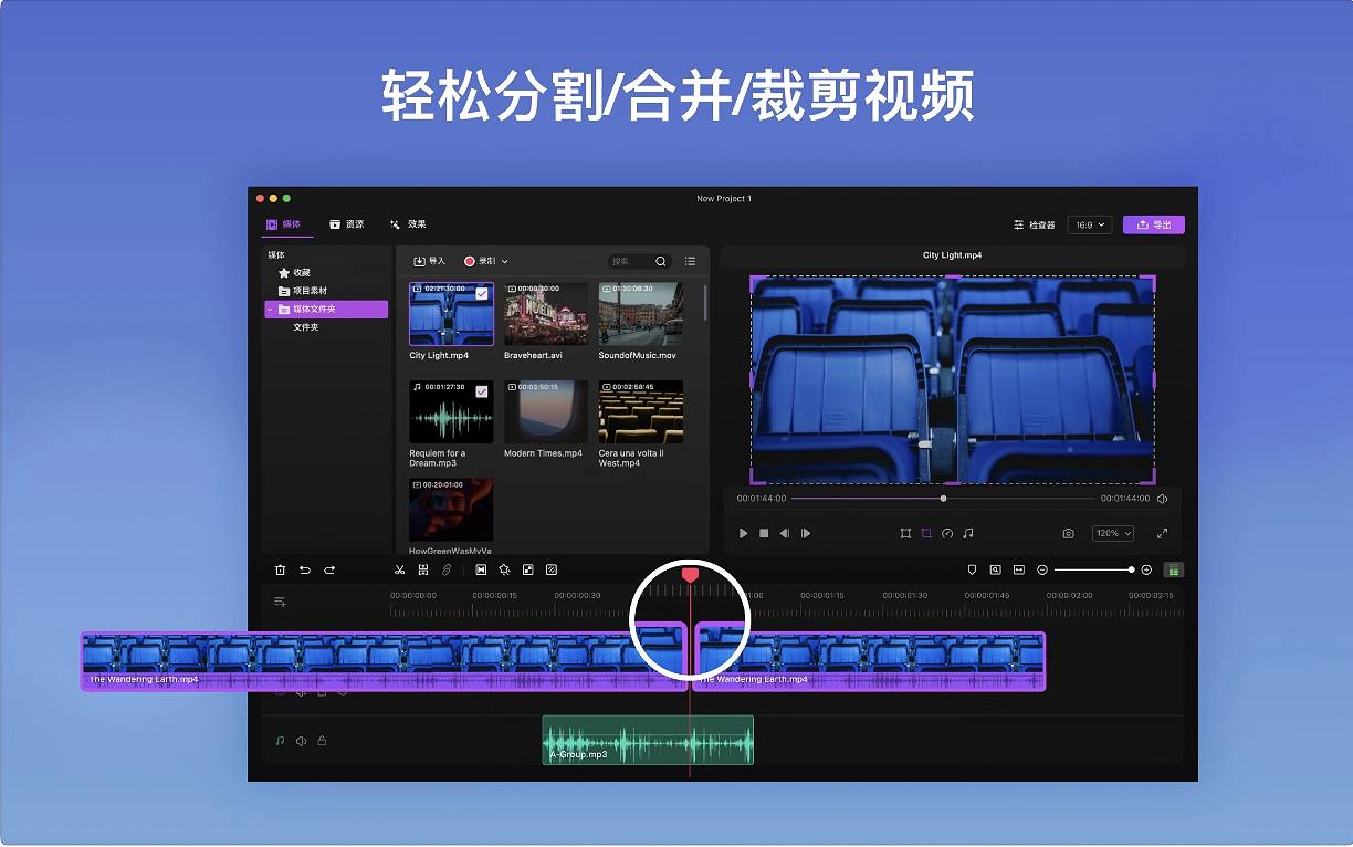 - 逐帧精确剪辑,快速切割不需要的画面,精细调整素材细节。