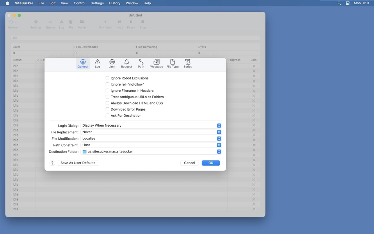 SiteSucker 可用于制作网站的本地副本。默认情况下,SiteSucker 会“本地化”它下载的文件,让您可以离线浏览站点,但它也可以不加修改地下载站点。