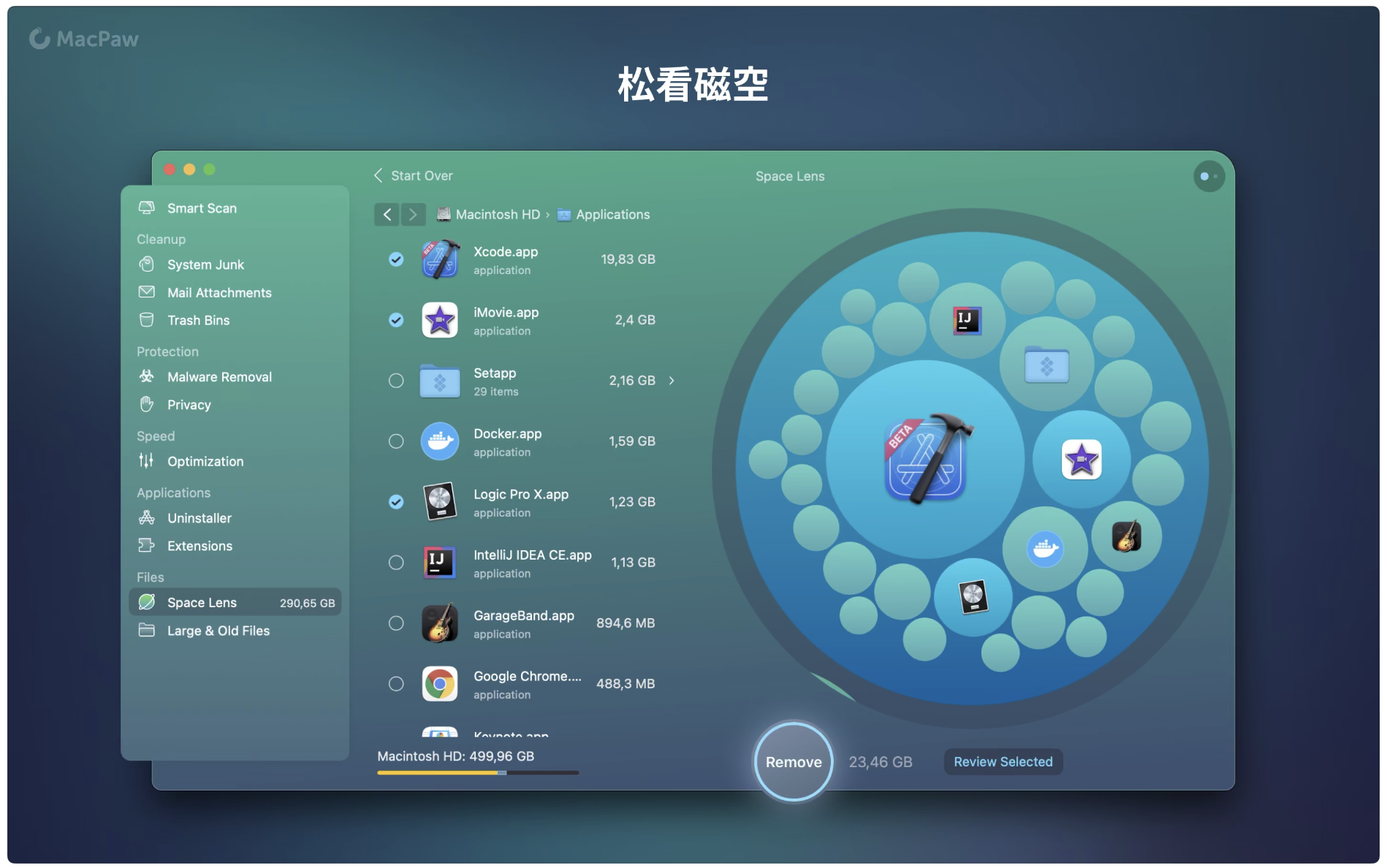 CleanMyMac X for Mac中文破解版只需两个简单步骤就可以把系统里那些乱七八糟的无用文件统统清理掉,节省宝贵的磁盘空间。cleanmymac x个人认为X代表界面上的最大升级,功能方面有更多增加,与最新macOS系统更加兼容,流畅地与系统性能更加结合,静默清理、记录更新、清洁缓存、快速和安全删除、卸载应用程序和清空回收站等重要功能。