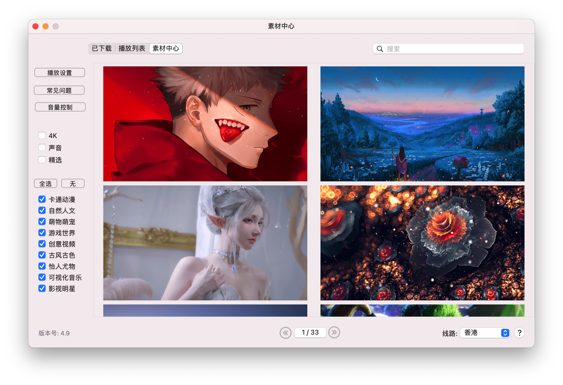 – 视频素材分类:4K超清、卡通动漫、自然人文、萌宠萌物、游戏世界、创意视频、怡人尤物、古风古色、影视明星等等,总有适合你的风格。