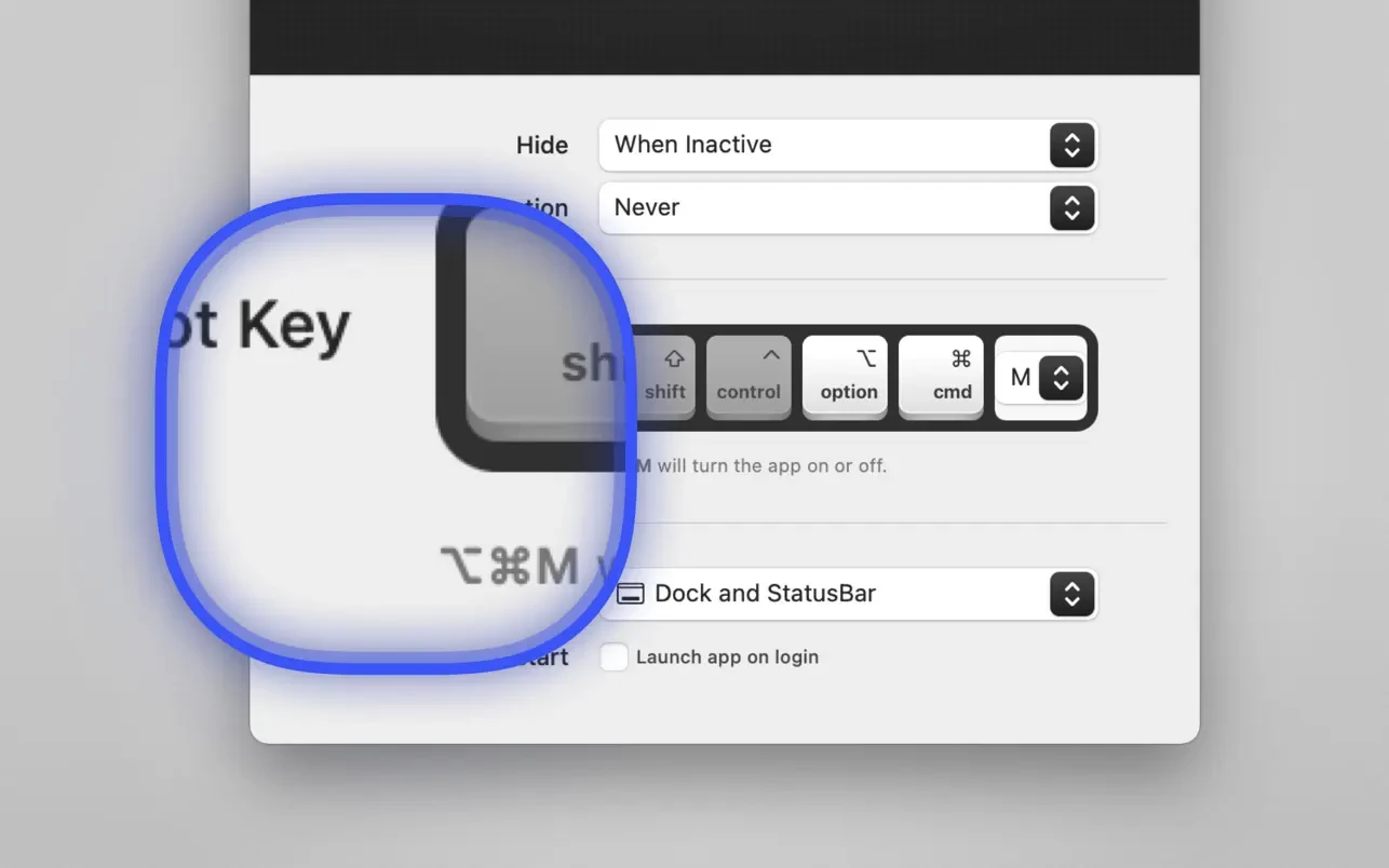 – 行为:自动隐藏、请求注意、全局热键。