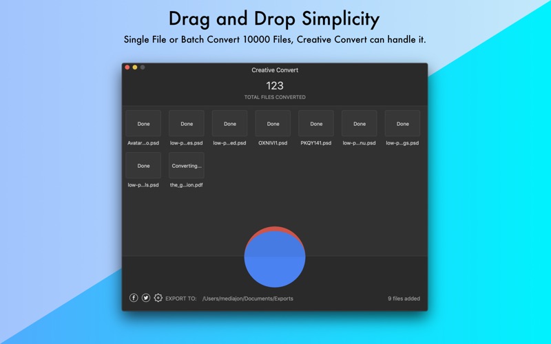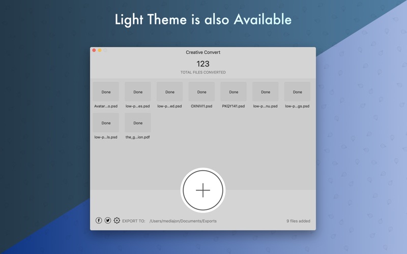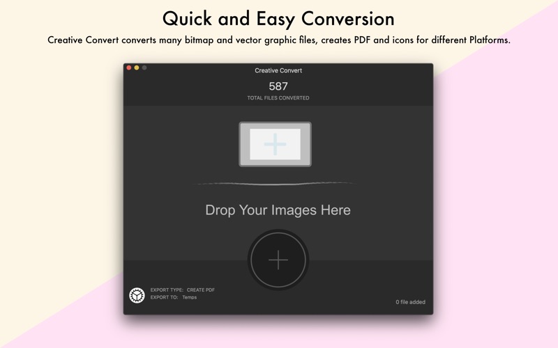 Creative Convert允许您在macOS上将单个或多个PSD,Ai,EPS和/或PDF文件转换为其他文件格式。它简单而美丽。