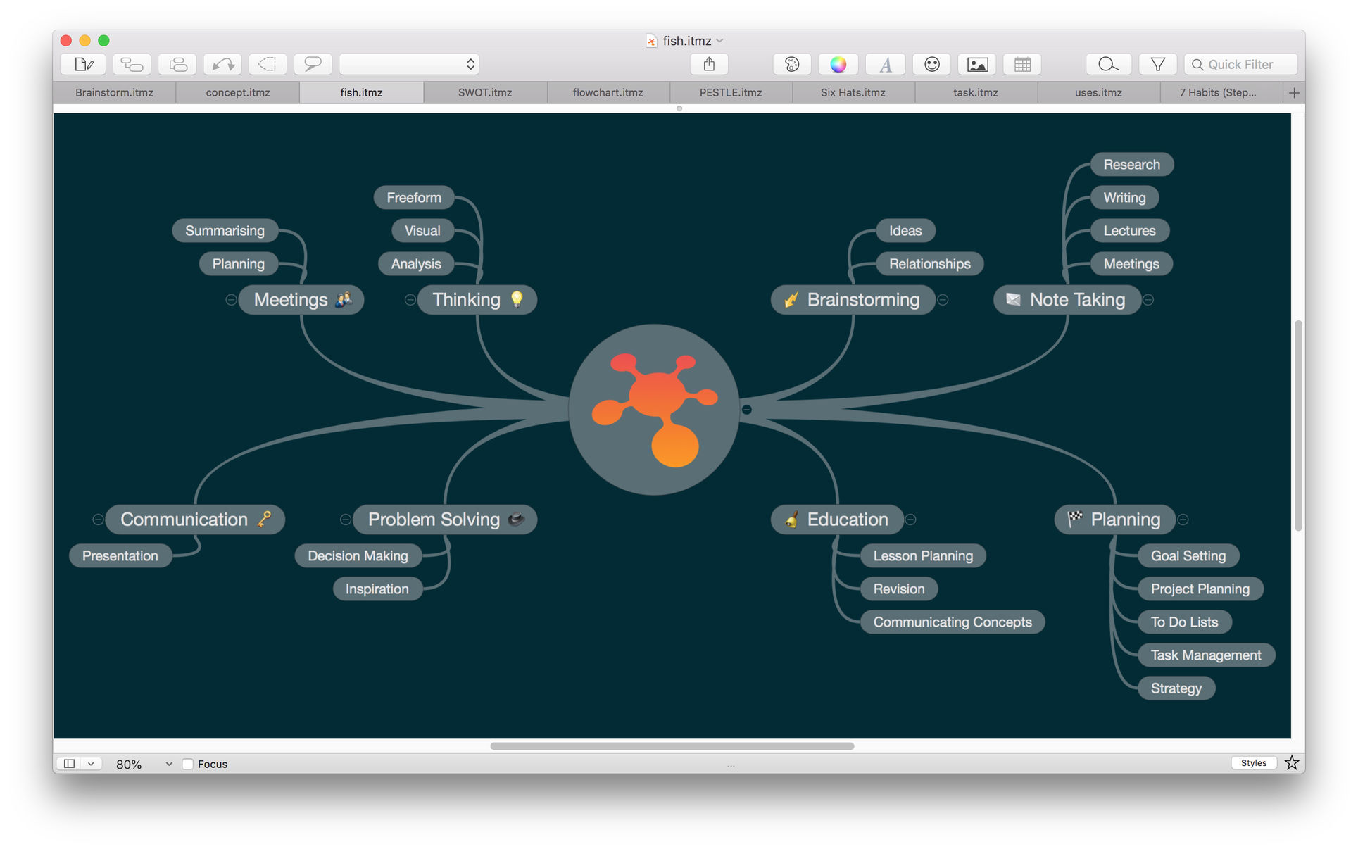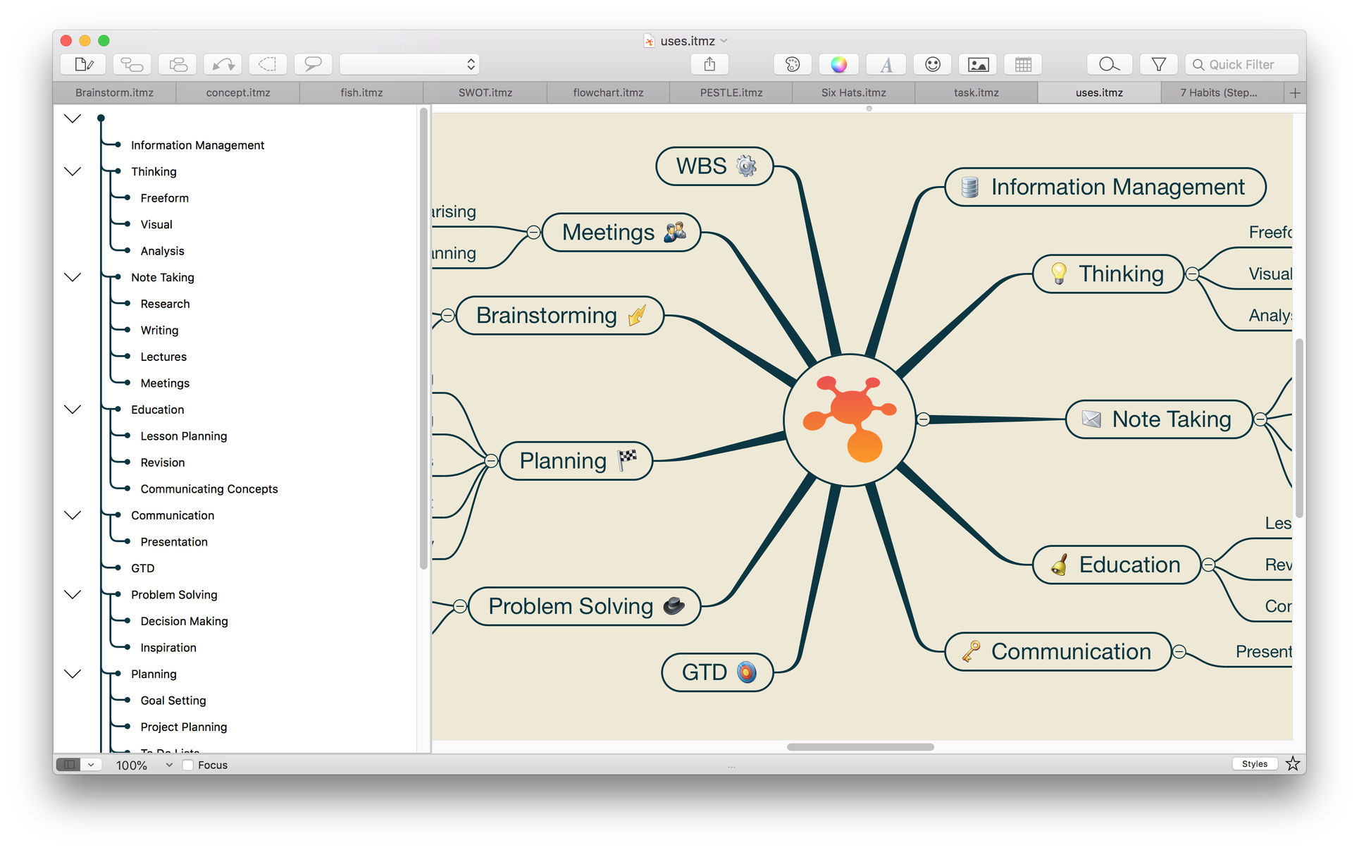 iThoughtsX for mac是一款强大的思维导图工具,通过允许您在模式和视觉组织的帮助下组织您的想法,帮助您将您的想法整理好。考虑到我们中的许多人每天都将大部分时间花在电脑前,从理论上讲,我们的大多数想法都会在那里出现。