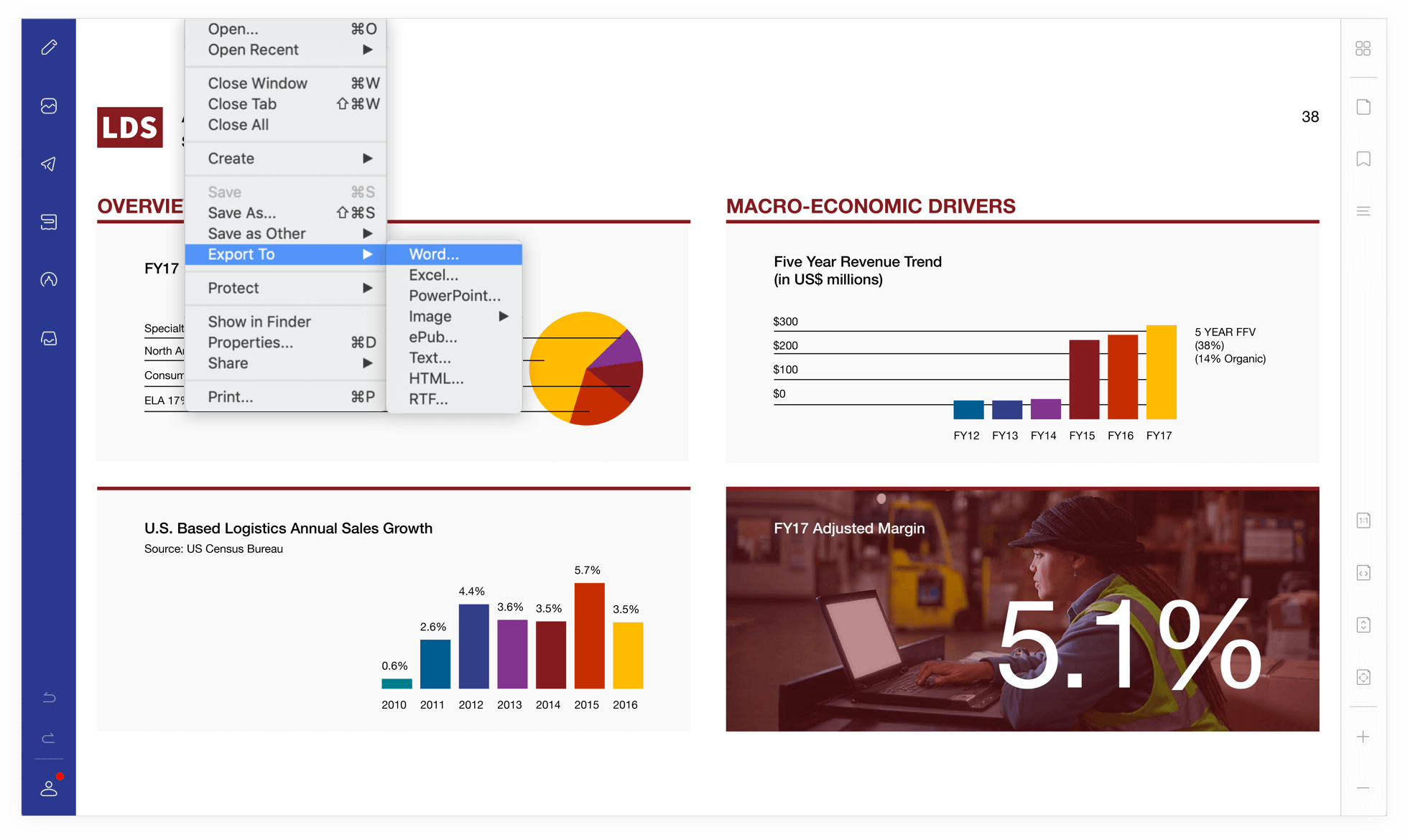 您想在其他程序中处理文档吗?从 PDF 直接转换为 Word、Excel、图形文件和许多其他文件格式。