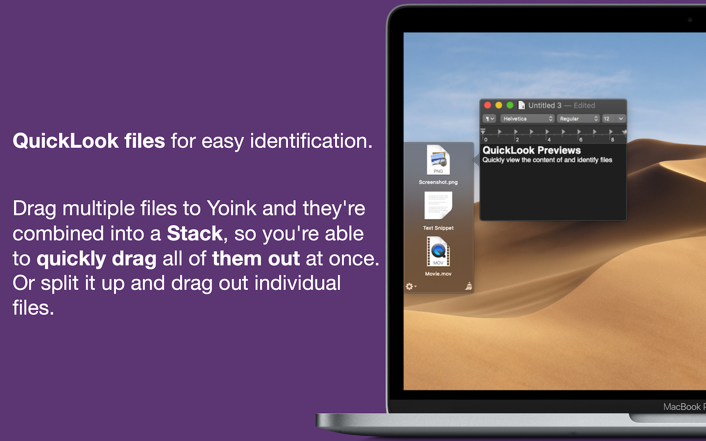 将多个项目放入 Yoink 中,它会自动将它们分组到堆栈中。在应用程序中拆分堆栈,重新组织或作为一个组移动 – Yoink 消除了它的麻烦,让您以更少的努力完成更多工作。