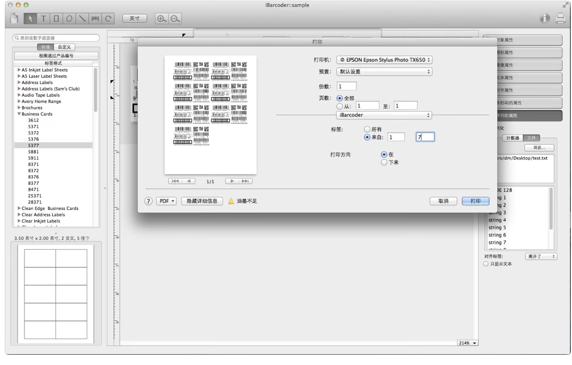 – 用进阶工具选项让改变条形码的类型,尺寸以及其他内置属性变得十分简单轻松,