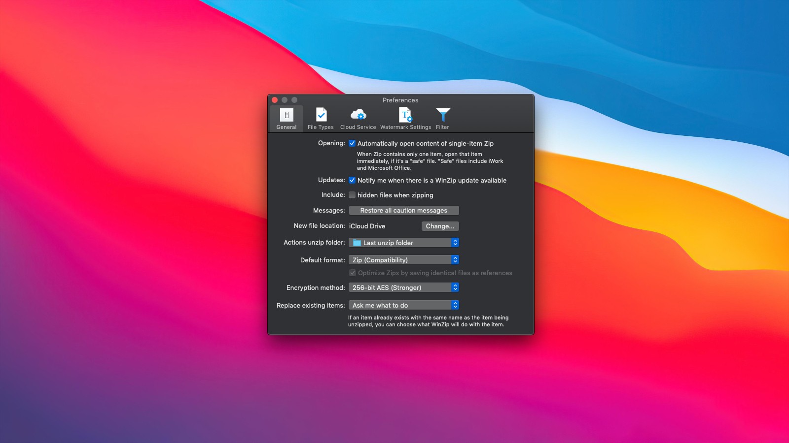 使用 WinZip® Mac 9 打开和转换多种行业标准压缩文件类型的内容。立即转换 LZH、LHA、RAR、7Z、TAR、Z、GZ、TAZ、TGZ、BZ、 XZ 或 Z 文件转换为 Zip 或 ZipX 文件。