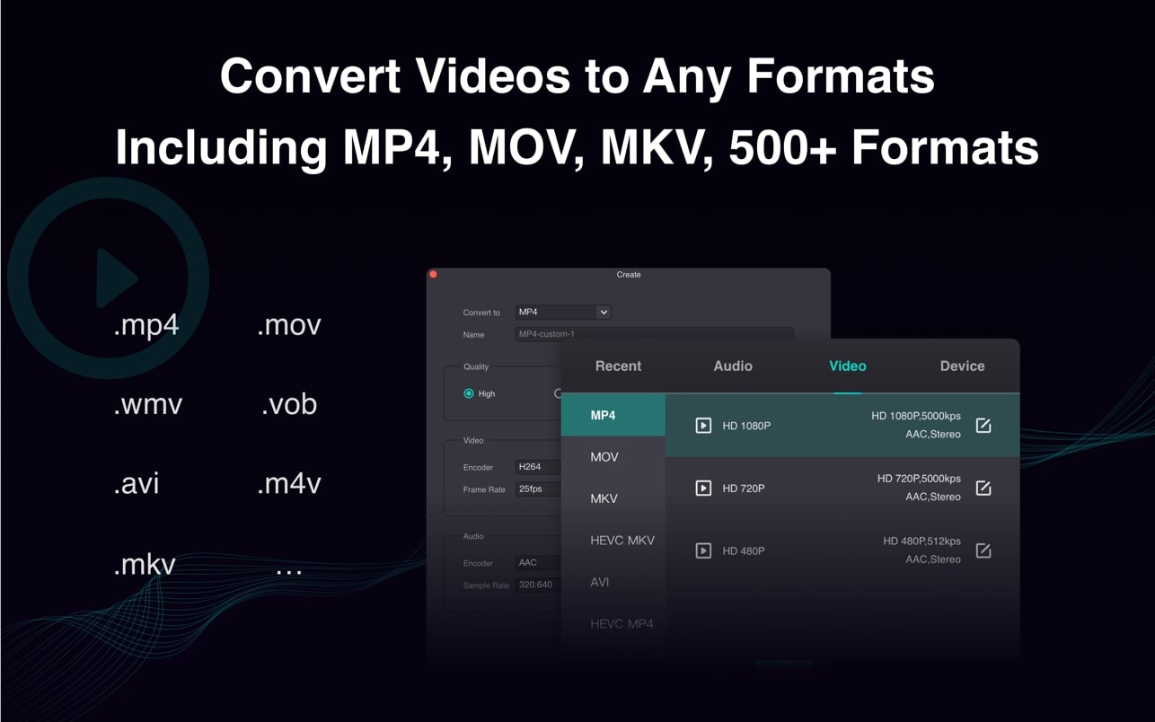 – 将任何视频转换为 MP4、MOV、3GP、VOB、MKV、M4V、WMV、AVI、MPG、FLV、F4V、SWF、TS等任何视频格式