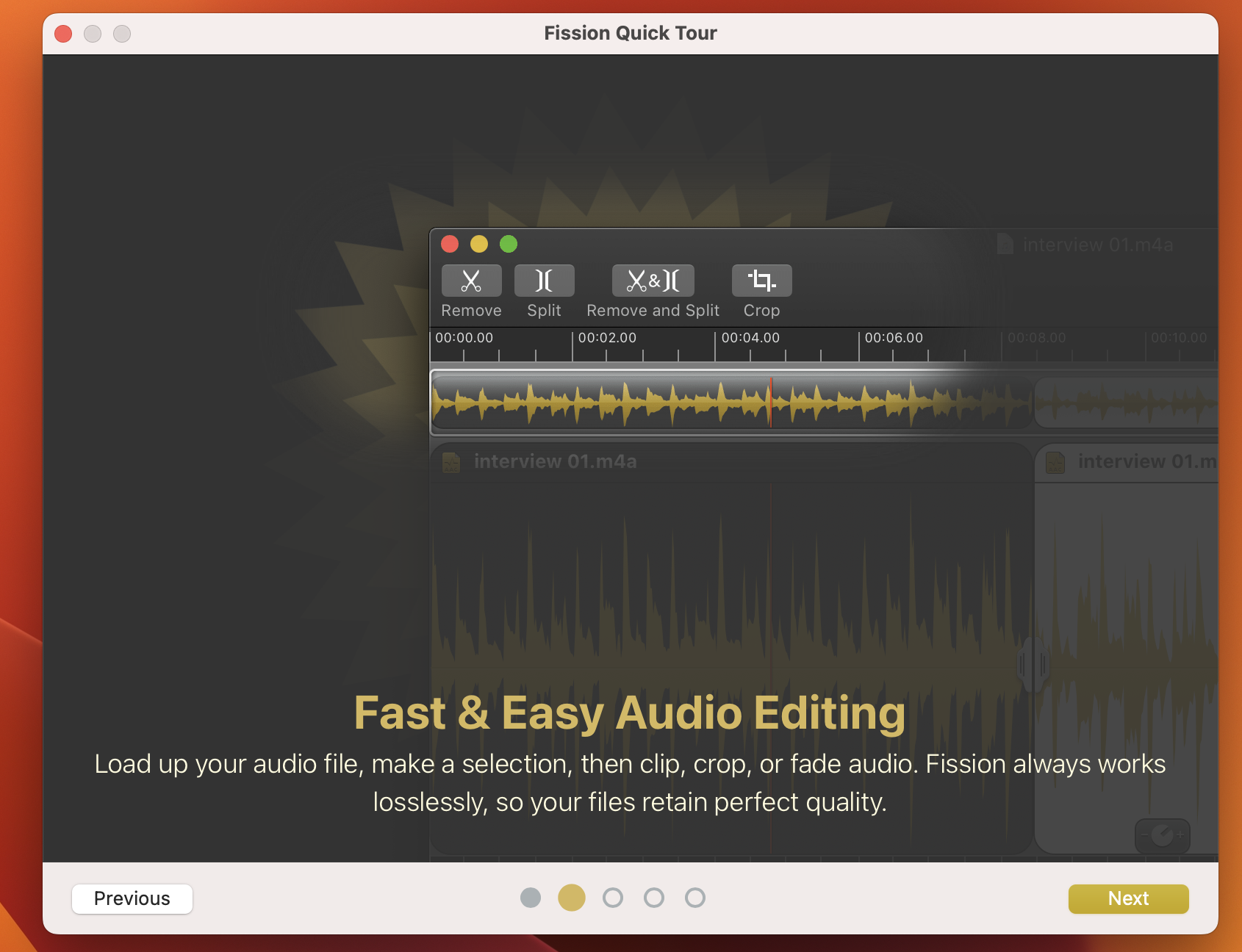 即使使用 MP3 和 AAC 格式,Fission 在编辑时也不会造成质量损失。这就像魔术一样,只有 Fission 才能提供!