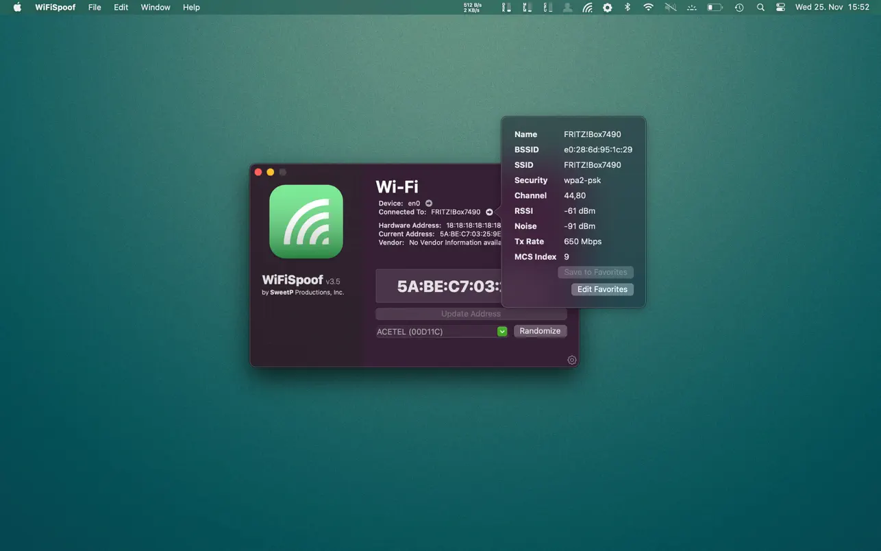 WiFiSpoof 是最好的系统网络工具,可让您快速了解 Mac 网络设备的当前状态。