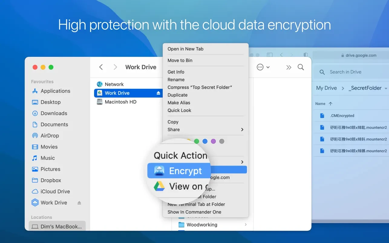 CloudMounter 是一个安全可靠的实用程序。它允许在云服务器上加密您的个人数据,这样只有拥有主密码的 CloudMounter 用户才能看到它。从任何其他访问点(即浏览器或本机客户端)查看存储只会显示废话。