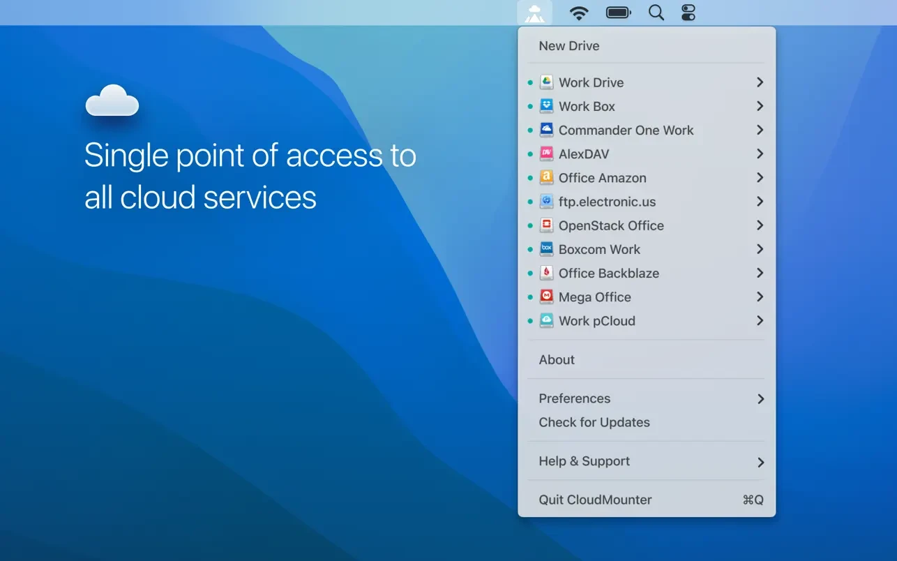 如果您使用多个云帐户或者您的 Mac SSD 驱动器容量极低,CloudMounter 是您的必备工具。