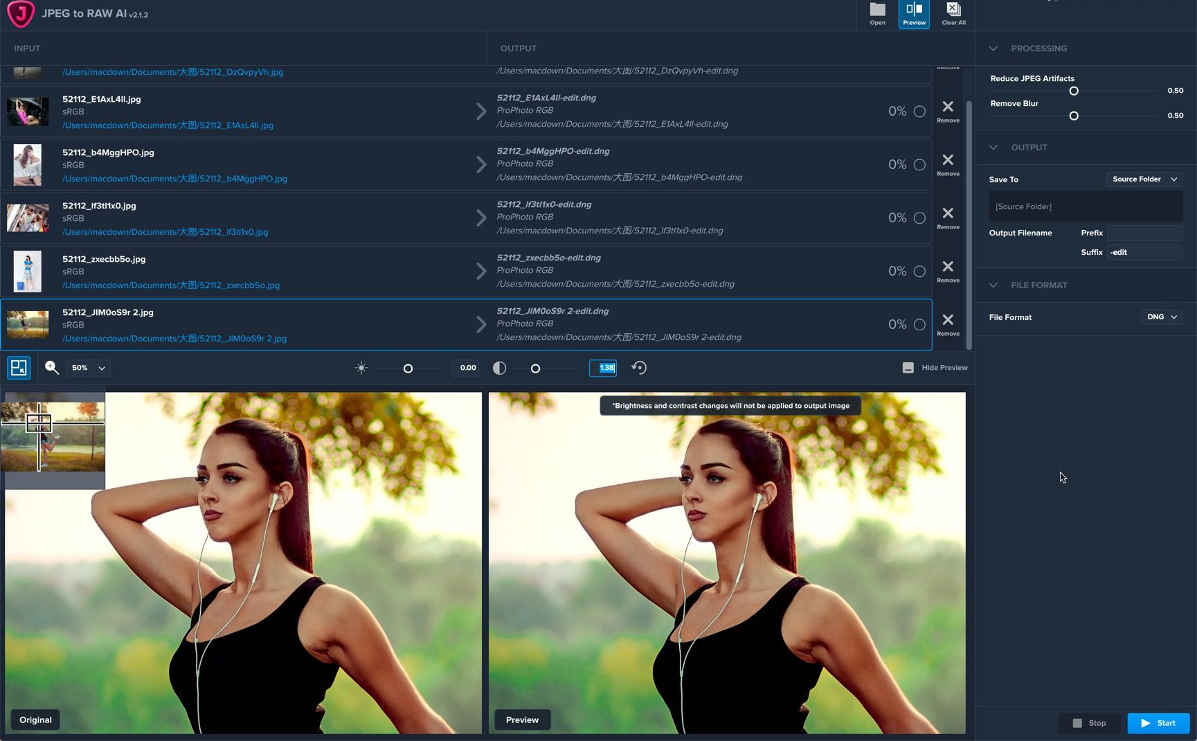 伪像在高质量的JPEG中不容易看到,但如果它们确实如此,它们可能会完全破坏图像。它们还会通过后期处理(尤其是锐化)得到强调。将图像通过 JPEG 运行到 RAW AI,以确保伪影不会影响您的工作流程。