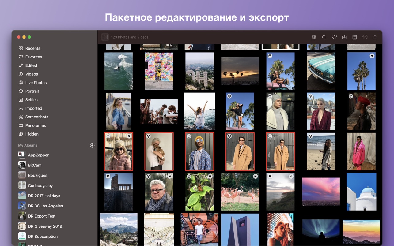 一次对多张照片应用编辑和过滤器。一键收藏/删除/隐藏许多图像。