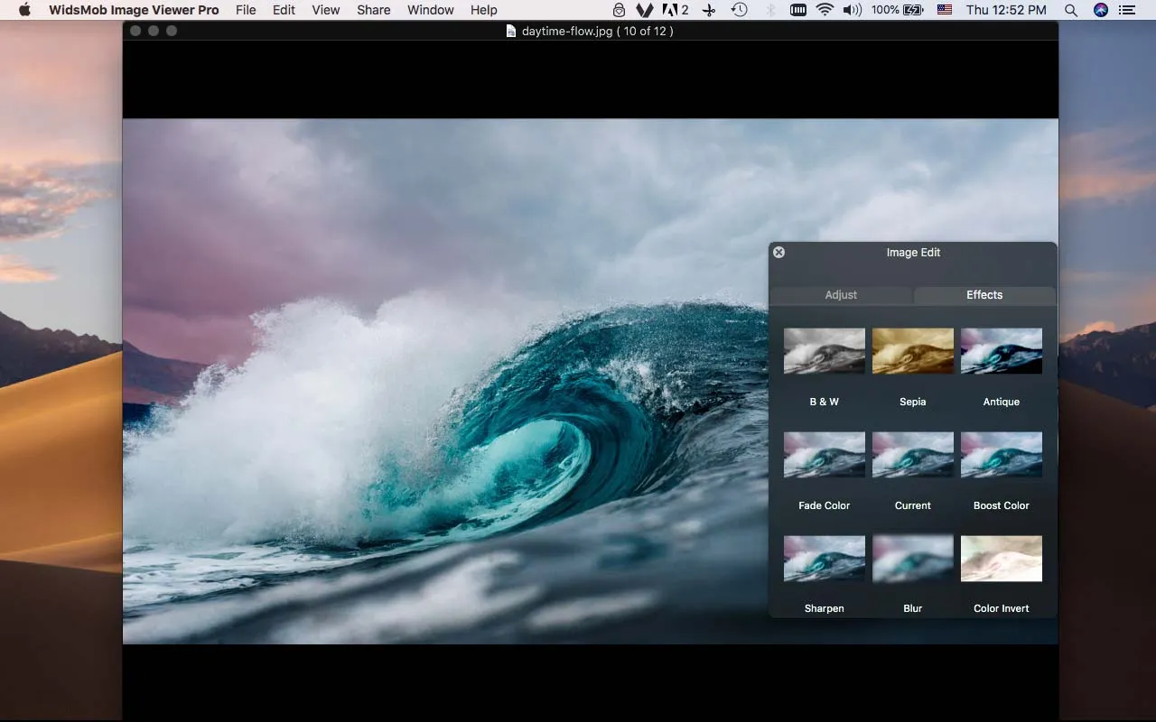 除了查看多媒体文件,您还可以在程序中管理和编辑文件。当您查看照片时,您可以将它们拖到桌面、添加到收藏夹、调整大小和批量转换、将文件分享到 Instagram 和其他网站。调整照片的不同参数或应用预设效果。至于视频和音频文件,您可以从原始文件夹中删除不需要的文件。