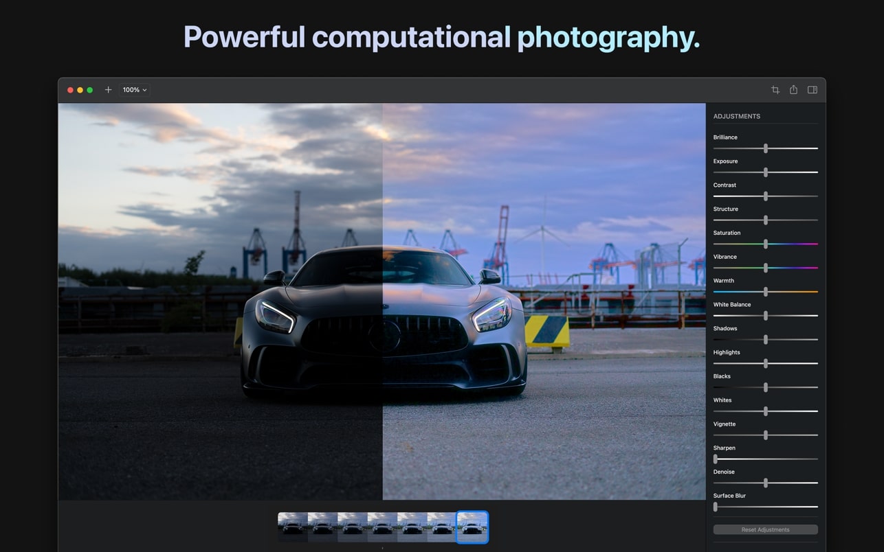 所有这些计算都组合在一个滑块中:Magic Bar。它简单、快速且直观。有了它,您只需单击一下即可快速调整照片和视频中的灯光,与使用常规照片编辑应用程序相比,节省您的时间并且需要更少的编辑。