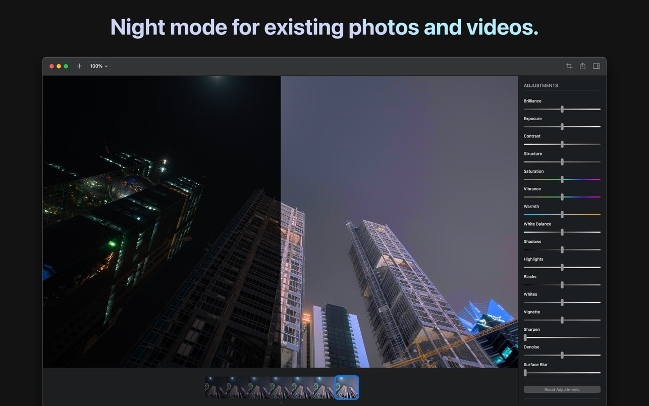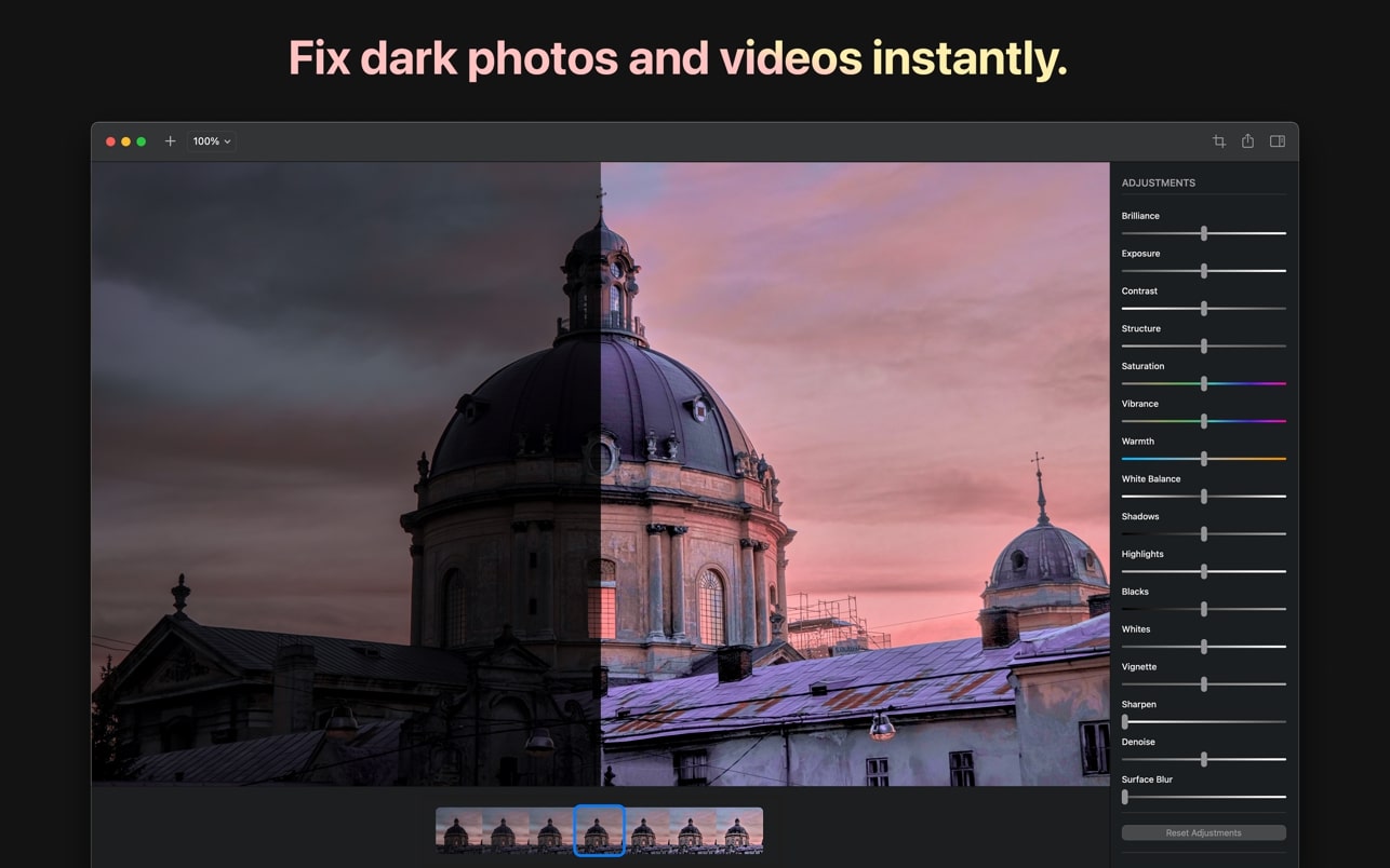 无论是照片还是视频,Brightly Pro 都能让您随心所欲地捕捉瞬间,让您以后可以自由调整照明。它还允许您为相册中曾经被认为无法使用的照片和视频注入新的活力。