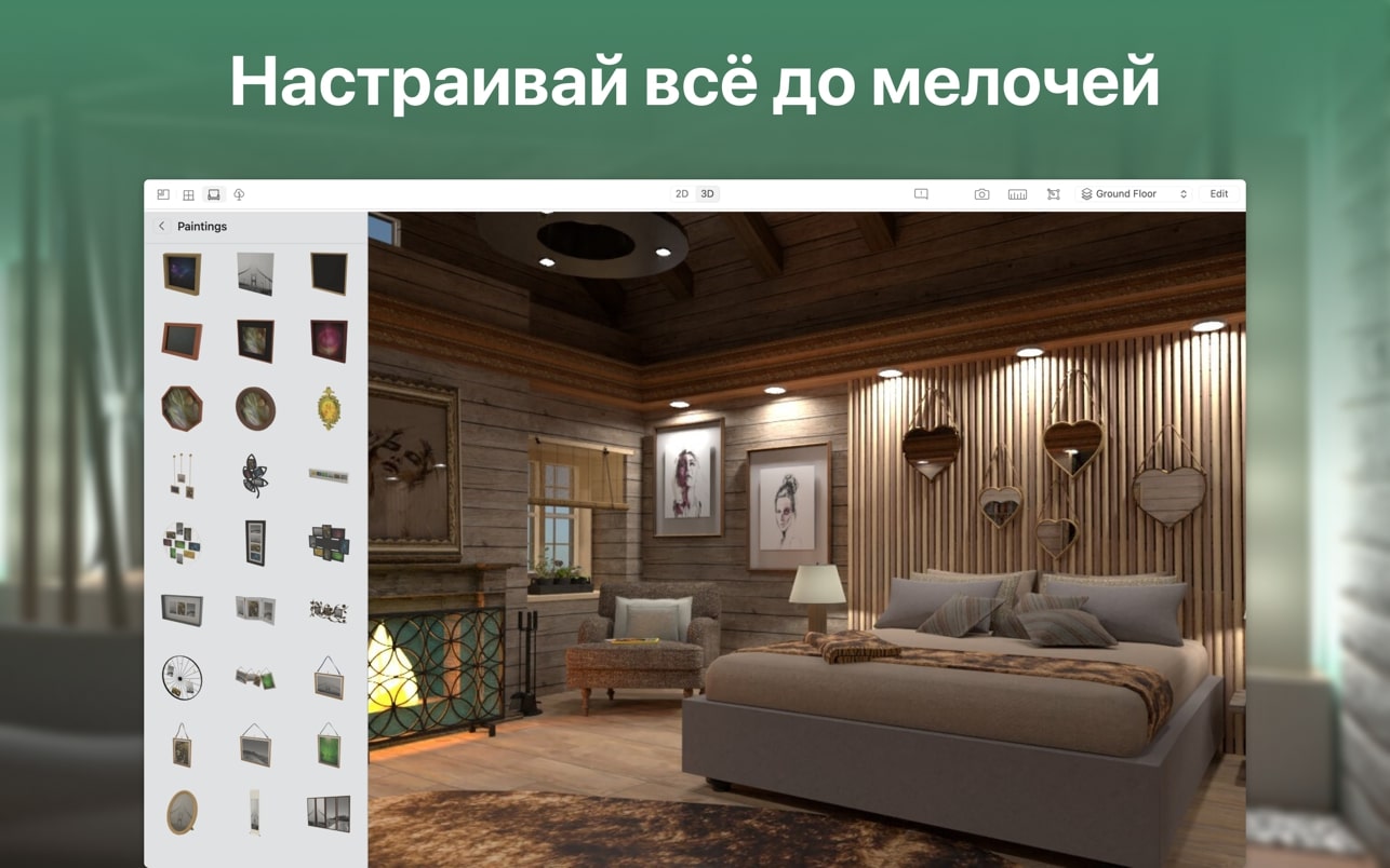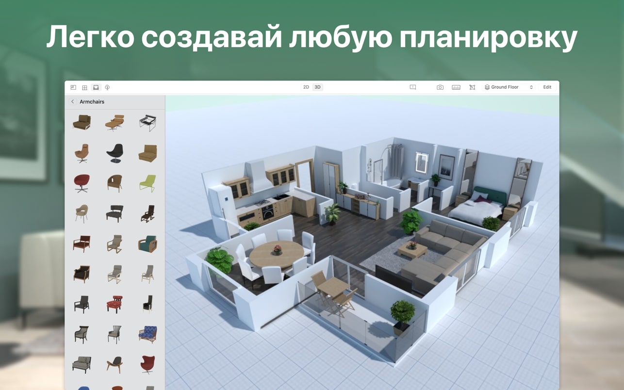 – 设计整个公寓、房子、办公空间甚至院子的房间、浴室、厨房、卧室、生活区的设计