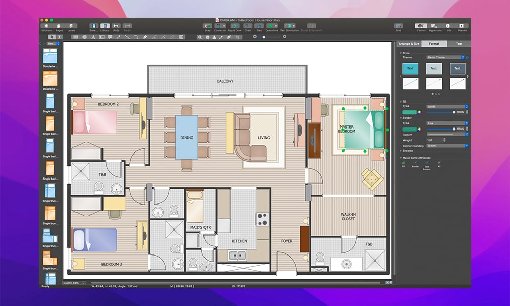 ConceptDraw DIAGRAM 提供了一套强大而全面的绘图工具。轻松设计任何类型的自定义模板来可视化您的特定业务图表。使用侧面板排列和格式化任何复杂的图表。格式、排序、对齐和定位工具允许创建具有专业外观的流程图、过程流程图、工程图、信息图表、仪表板和更多清晰易懂的图表。