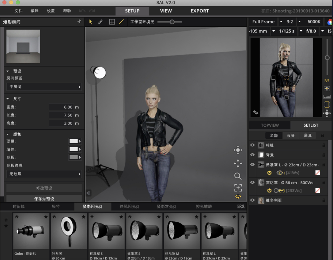 Set A Light 3D Studio for Mac是一款可以帮助摄影工作者对3D室内摄影进行灯光位置调整的软件,你可以清楚的了解到不同位置的灯光怎么布局。Set A Light 3D Studio Mac仿真影楼的效果,使用它可以预先在PC或Mac上搭建的照明设置,逼真地模拟预期的画面效果和打印一套计划。