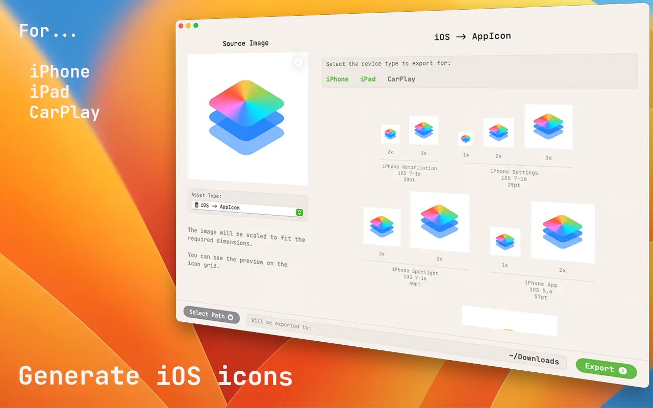– 为 iPhone、iPad 和 CarPlay 生成应用程序图标
