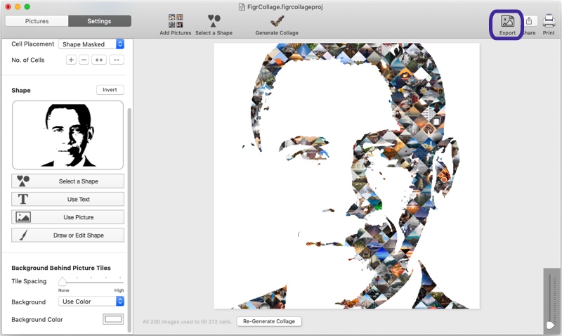 FigrCollage for Mac制作任何形状,数字,文字或文字形式的照片拼贴的最佳软件。使用您的图片制作心形,圆形,正方形或任何其他形状的照片拼贴。以数字1、2或任何其他数字的形状排列照片。布局图片以形成任何字母或单词。