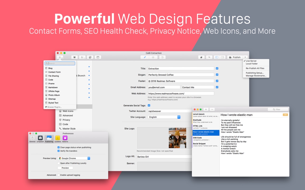 RapidWeaver for Mac 是一款功能强大且易于使用的网页设计应用程序。无需编写任何代码即可创建您自己的美观、响应迅速的网站。