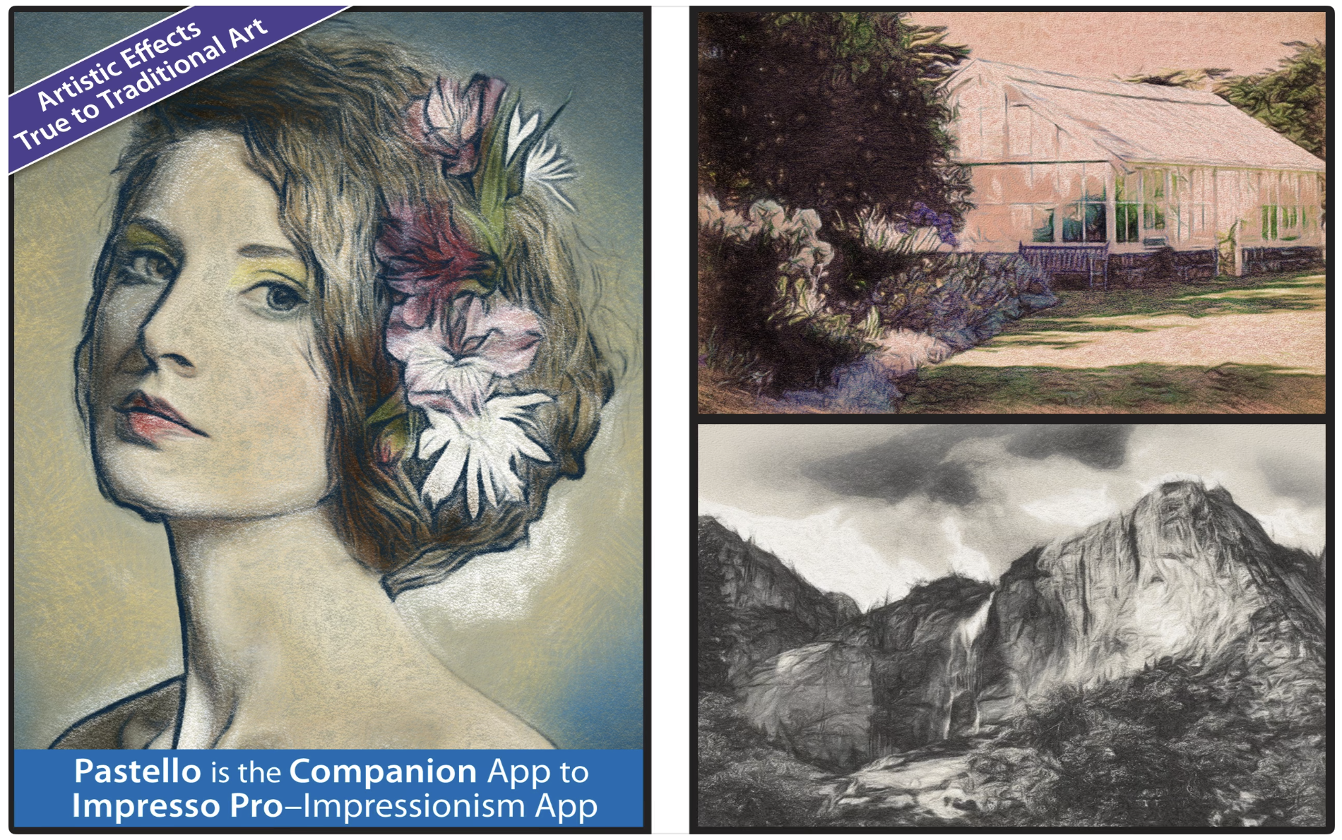 Pastello使拍摄图像并将其更改为粉彩,粉笔,木炭,蜡笔,彩色铅笔和石墨画图变得简单便捷。单独使用或使用功能强大的图层结合使用这些媒体,即可生成有趣的表情素描效果,充满多彩的个性和激情。最好的部分是Pastello可以完成所有工作。