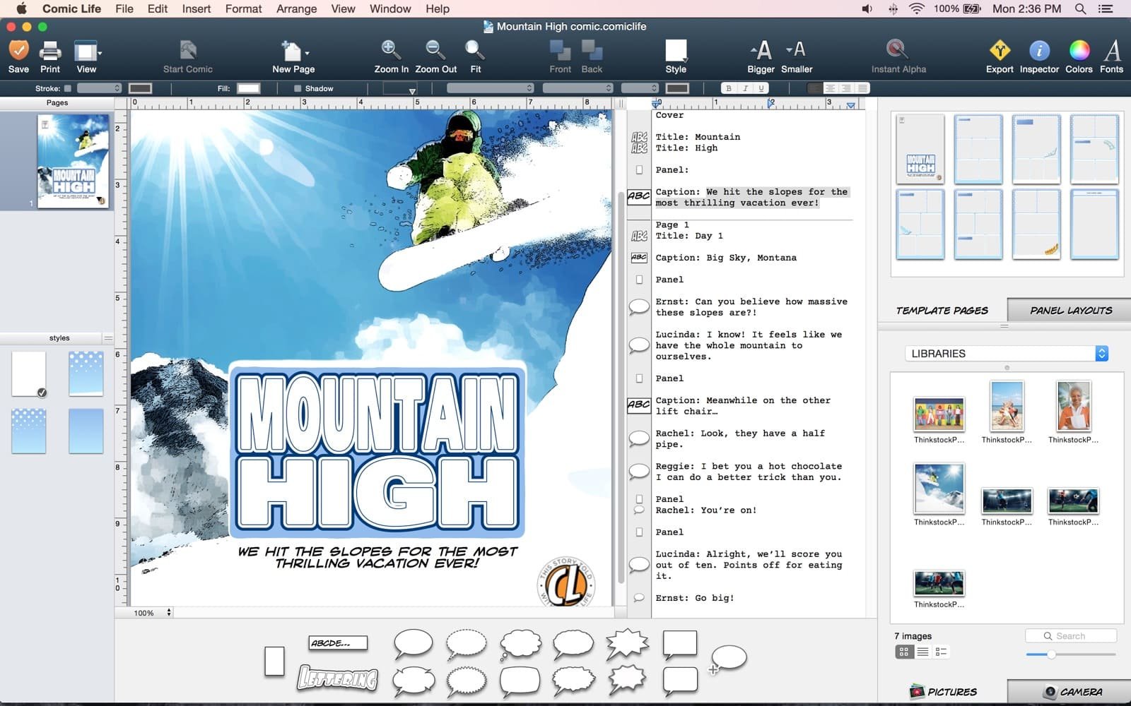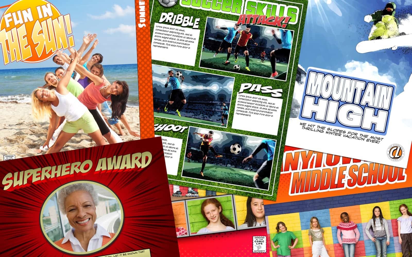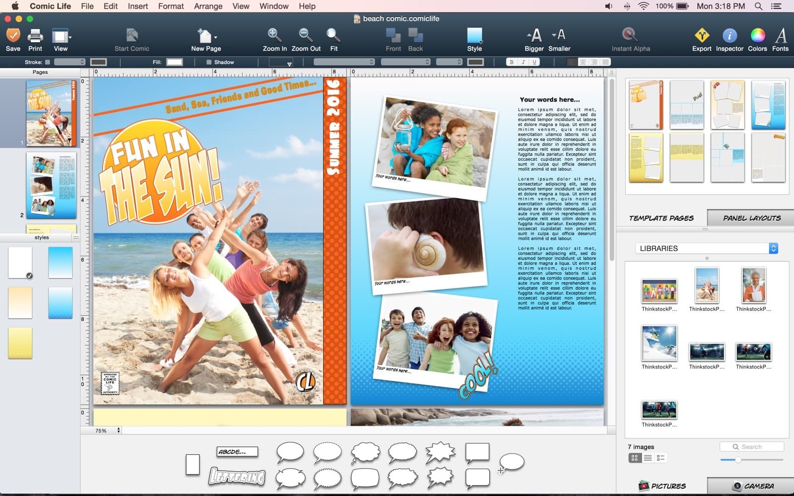 Comic Life 不只是为了创作漫画。您可以使用照片重述家庭假期或捕捉特殊的一天。操作很简单:只需将照片拖到页面上,然后在语音气球和标题中添加您的文字。过滤您的图像并添加一些半色调或速度线以进行更多操作。