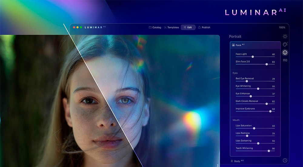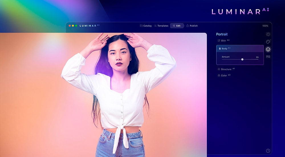 使用革命性的工具增强肖像的自然美 – 无需遮罩。Iris AI 让您只需点击一下即可更改眼睛颜色。选择自然色或具有创造性的异想天开的东西,让眼睛直视您的灵魂。身体 AI 塑造完美的身体,在需要的地方增加或减少体重。FaceAI 可以点亮和瘦脸,去除黑眼圈和红眼,改善唇色,定义眉毛,甚至更多。