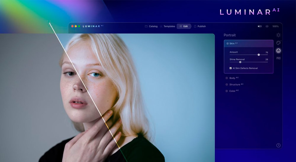 Luminar AI for Mac 是一款完全由人工智能驱动的图像编辑器和插件。内置丰富的模板在AI人工智能的加持下,为每张图像提供完美效果。有了 Luminar AI 您无需再花费数小时的时间对您的摄影作品进行滤镜选择及效果调整。可以处理:身体、光圈、面部、皮肤、嘴型、散景、大气、结构、天空、色彩和谐、超对比、心情、增强天空、合成等等。设计精美,使用简单,支持中文推荐摄影/设计师们使用。