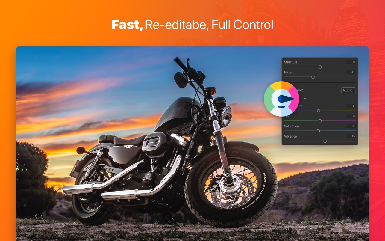 九个强大的照片效果滤镜就像您可以放在相机镜头上的滤镜一样工作。混合和匹配颜色和色调增强器、HDR 外观、动态对比度、发光、黑白、LUT 等。它甚至包括许多专业级预设来帮助您入门。
