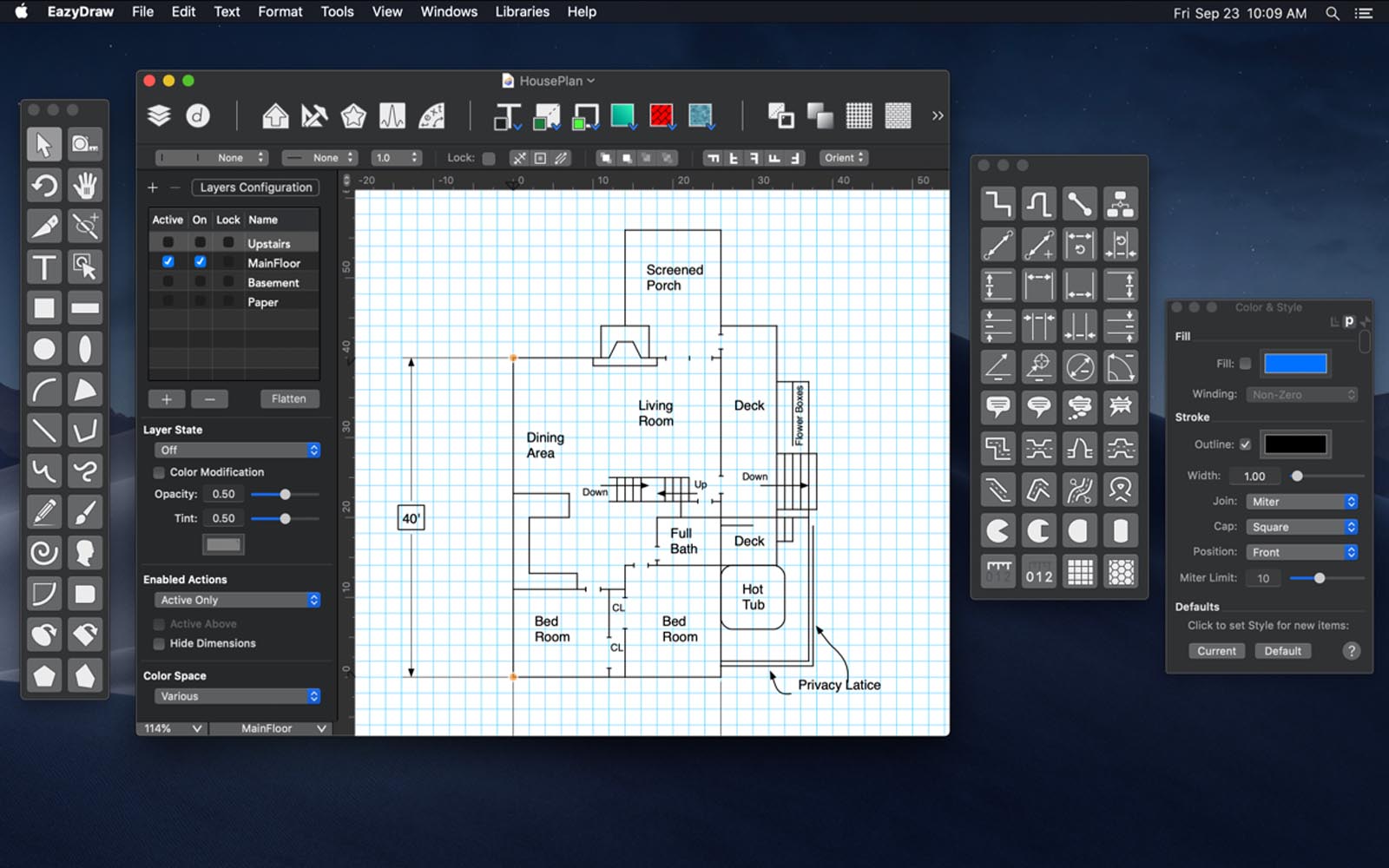 EazyDraw应用商店10.8.1版可在macOS Monterey, Big Sur, Catalina, Mojave和High Sierra上运行,并实现了最新的macOS技术。M1芯片组(原生ARM64)、黑暗模式、iCloud、Retina图形、恢复、版本、全屏等。