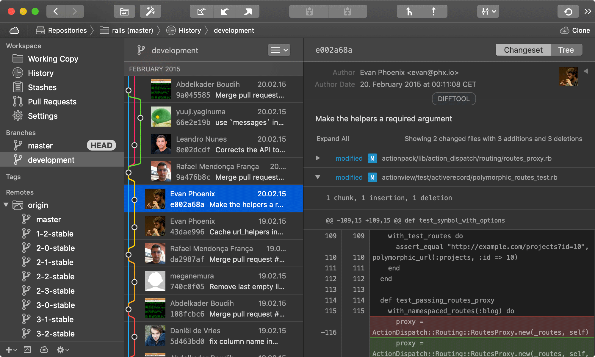 Tower 在易于使用的界面中抽象了 Git 的复杂性。例如,许多操作可以简单地通过拖放来执行,并且可以轻松地撤消错误。高级用户可以通过单行分段、子模块支持或文件历史记录等功能提高他们的工作效率。