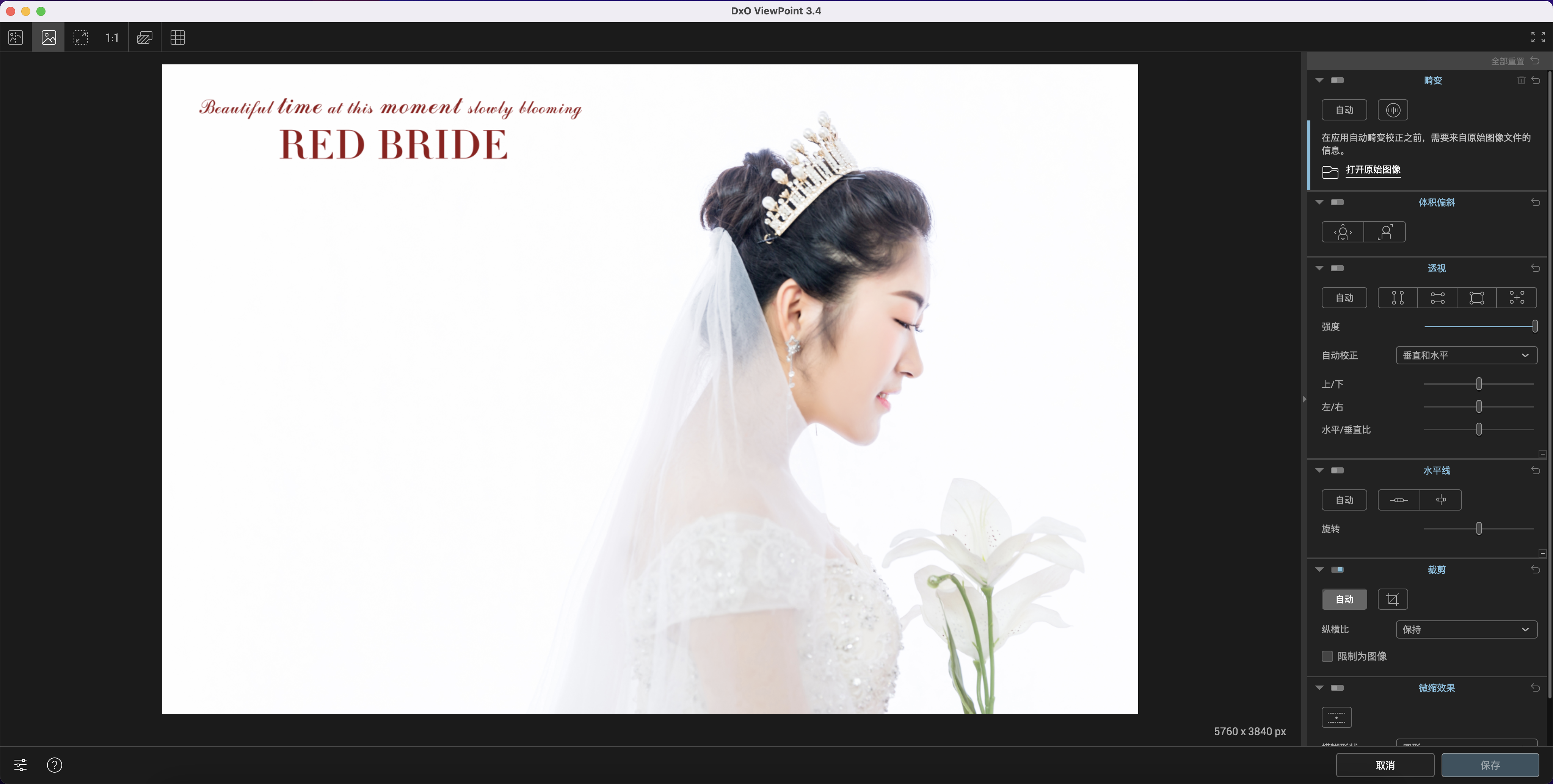DxO ViewPoint使用一个复杂的工具来纠正镜头产生的各种失真。无论是桶形,枕形还是鱼眼变形,图像中不会出现不需要的曲线,然后您就可以轻松应用视角工具。
