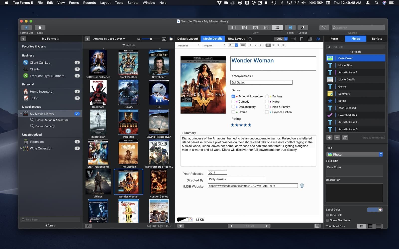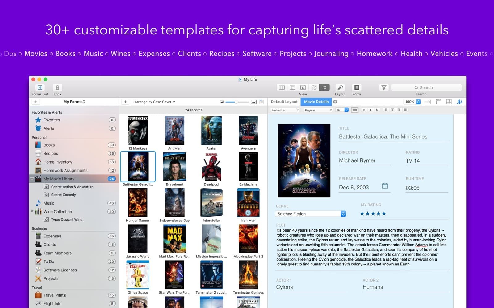 你是一个电影爱好者,但有太多电影要记住吗?这很容易,因为 Tap Forms Organizer 可以帮助您对整个电影收藏进行分类、评级和管理。