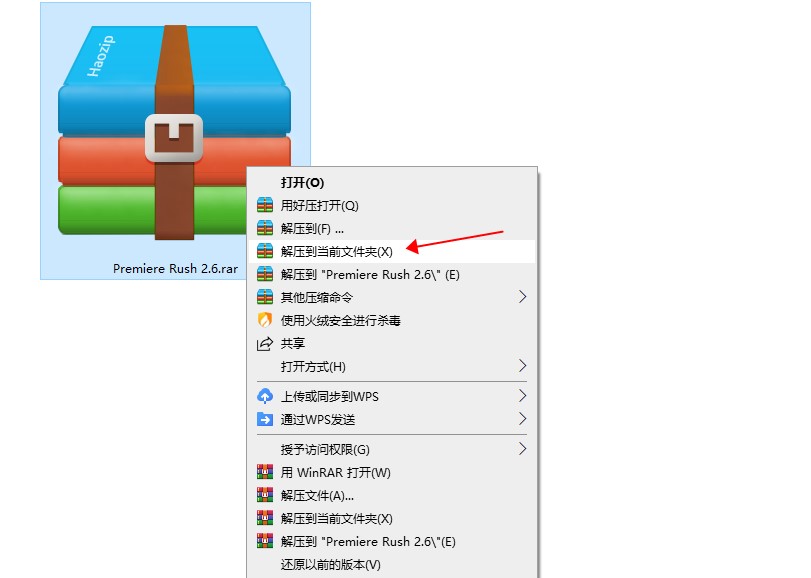 1、右键解压到当前文件夹(如果下载完成,不是压缩图标显示,显示白色或者浏览器图样,说明你电脑没有解压软件,自行安装解压软件)