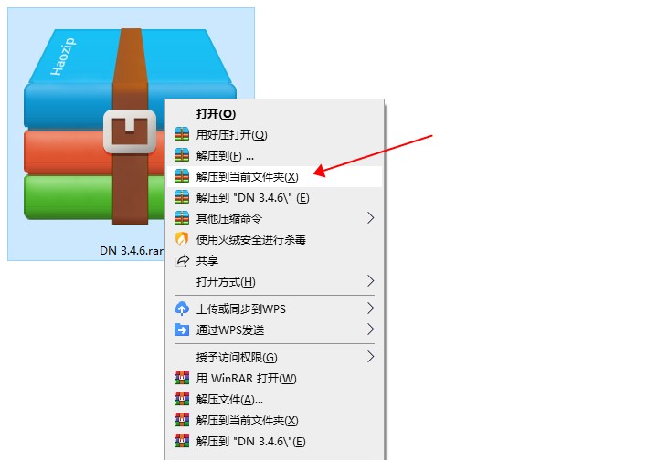 1、右键解压到当前文件夹(如果下载完成,不是压缩图标显示,显示白色或者浏览器图样,说明你电脑没有解压软件,自行安装解压软件)
