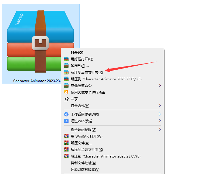 1、右键解压到当前文件夹(如果下载完成,不是压缩图标显示,显示白色或者浏览器图样,说明你电脑没有解压软件,自行安装解压软件)