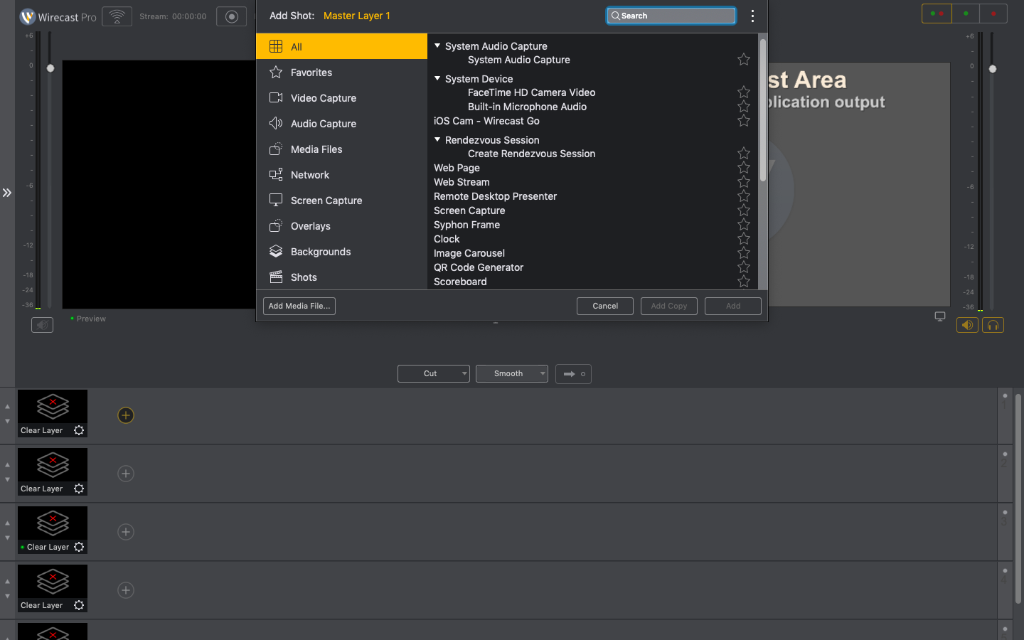 Wirecast Pro for Mac是一款macOS平台的现场摄像机画面切换视频直播与制作软件,软件集现场多摄像机画面切换跟现场视频制作功能集于一身,它拥有三维图文、虚拟3D前景、色键、背景、过渡特技、内置字幕或是下方字幕、虚拟布景和内建的比分模板等功能,支持现场编码为流行的流媒体格式,包括QuickTime、On2 Flash 8、H.264和Windows Media。