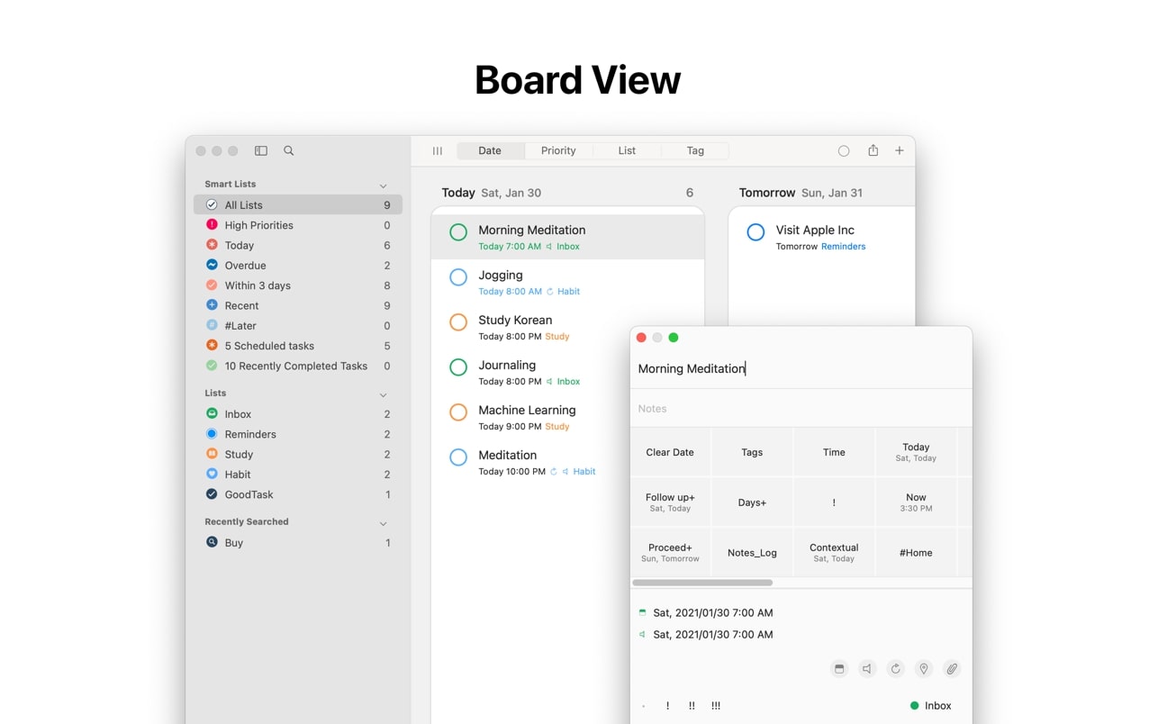 GoodTask 为您关心和需要完成的事情提供各种观点。使用 GoodTask 更好地管理您的任务、项目甚至您的生活。